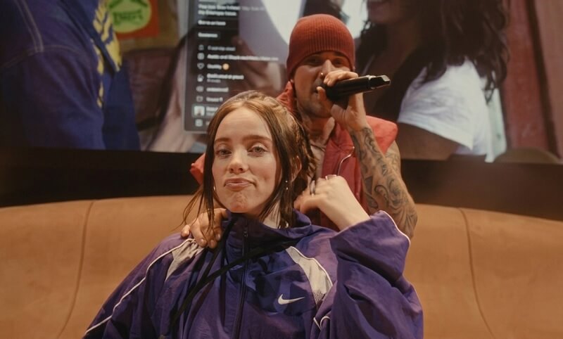 Billie, yang terlihat mengenakan gaya khasnya, tampak sangat terkejut dan emosional. Ia sempat menutupi wajahnya karena malu sekaligus bahagia—reaksi yang sangat manusiawi dari seseorang yang tumbuh besar dengan poster Justin Bieber di dinding kamarnya.