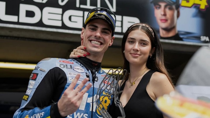 Kemenangan ini bukan hanya mengguncang paddock, tetapi juga menghadirkan momen emosional yang menyentuh hati. Saat Aldeguer melintasi garis finis dan mengibarkan bendera Spanyol, kamera televisi menangkap sosok Elia Pintat Rodriguez, pacarnya, yang menitikkan air mata haru di paddock tim.