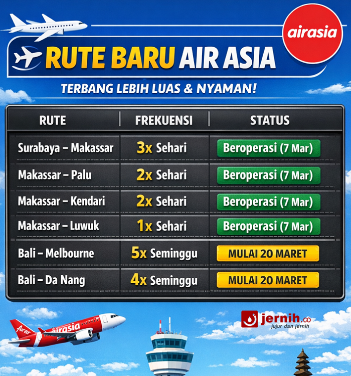 Strategi “berani” AirAsia di tahun 2026 terlihat dari diversifikasi rute yang tidak lagi hanya berpusat di Jakarta atau Bali, melainkan memperkuat hub di Surabaya, Medan, dan Makassar.