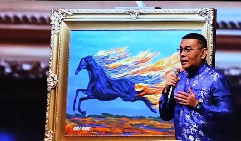 WWW.JERNIH.CO – Malam perayaan Imlek yang digelar Partai Demokrat di Djakarta Theatre, 18 Februari 2026 punya cerita lain. Sebuah lukisan karya Presiden ke-6 RI, Susilo Bambang Yudhoyono (SBY), yang berjudul “Kuat Laksana Kuda Api”, menjadi pusat perhatian dunia setelah terjual dengan harga yang melampaui ekspektasi siapa pun. Bukan lagi ratusan juta, tapi miliaran rupiah.