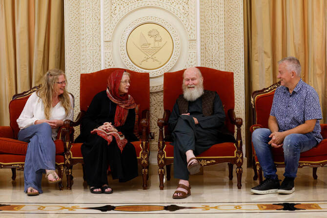 Mereka disambut hangat oleh anggota keluarga setibanya di Doha. Putri mereka, Sarah Entwistle, mengatakan kepada AFPTV bahwa ia “diliputi rasa syukur dan lega”.