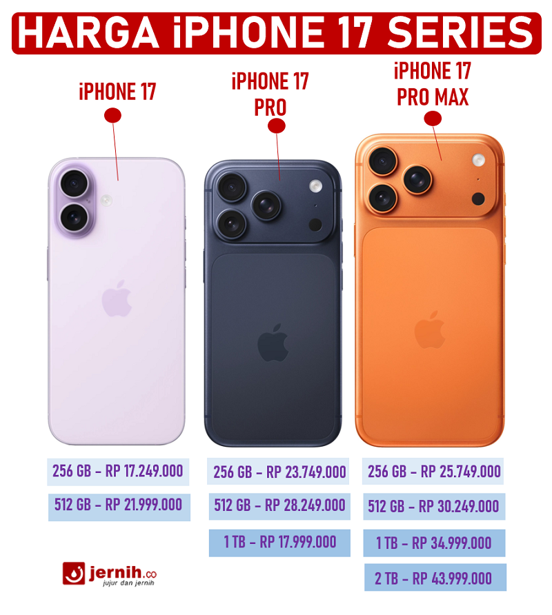 - Cek selisih harga antara varian iPhone 17, 17 Pro, dan 17 Pro Max di Indonesia, apakah fitur tambahan Pro / Max sepadan dengan kenaikan harga?
