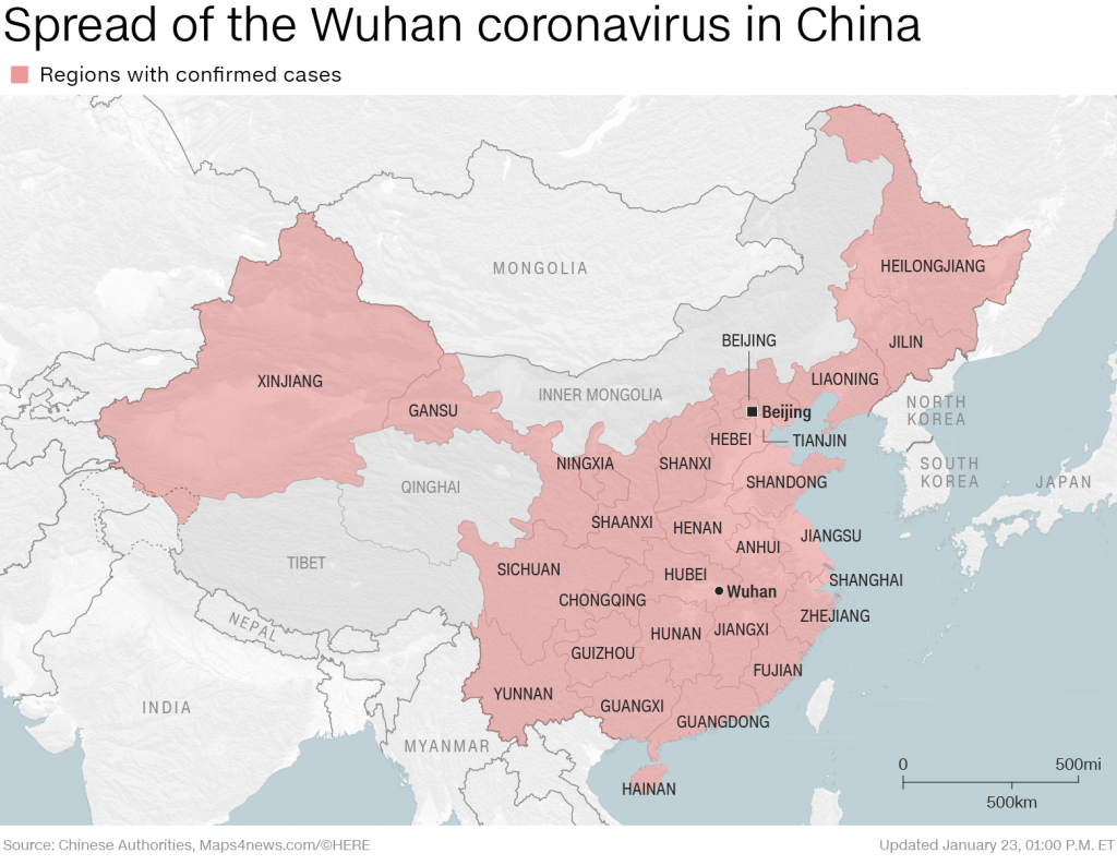 CNN malaporkan kabar dari Propinsi Gansu mengkonfirmasi bahwa hanya tiga propinsi di Cina yang sejauh ini masih bersih dari virus mematikan itu, yaitu Tibet, Mongolia Dalam, dan Qinghai.