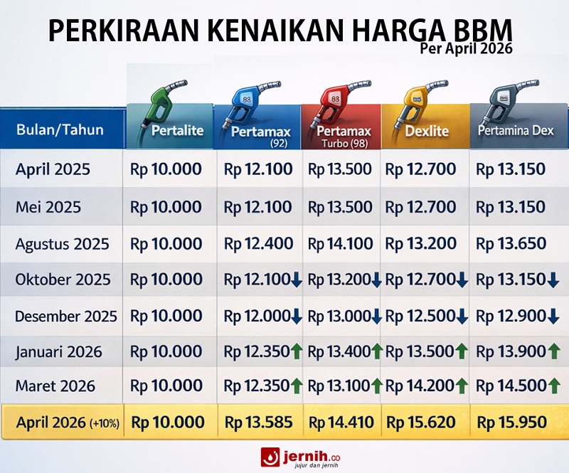 Krisis bahan bakar minyak dunia akibat Perang Iran yang dilakukan Amerika Serikat dan Israel tampaknya berimbas ke Indonesia. Harga BBM Brent melonjak, sementara kurs rupiah terhadap dolar pun mendaki. Berikut kemungkinan yang akan terjadi apda 1 April 2026 jika Pertamina menaikkan harga BBM non subsidi sebesar 10%.