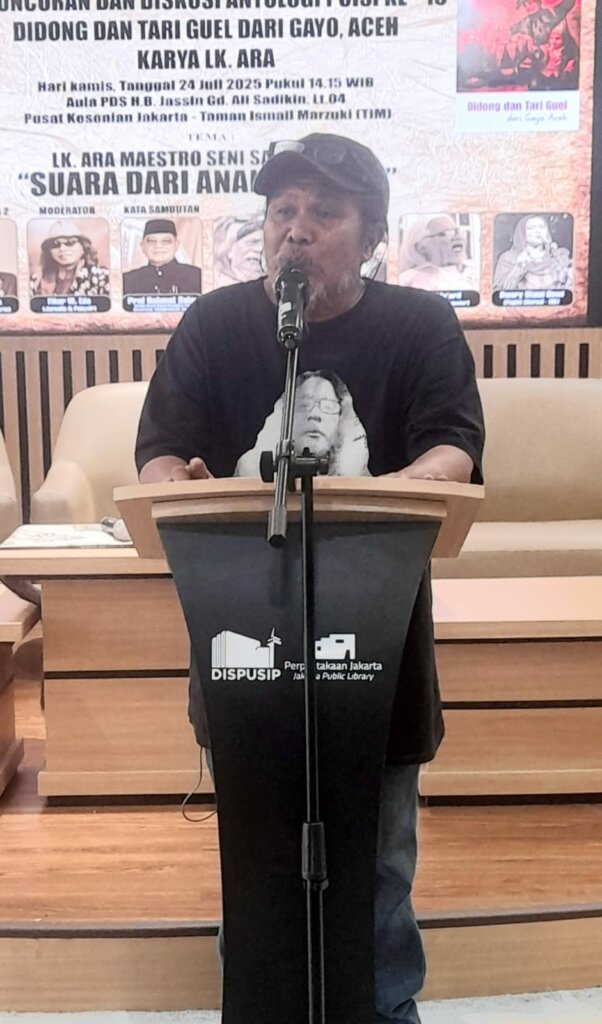 Hal tersebut dikatakannya ketika menutup acara peluncuran dan diskusi antologi puisi ke-15 “Didong dan Tari Guel dari Gayo Aceh” karya LK.Ara, dengan tema LK.Ara, Maestro Seni Sastra Gayo “Suara Dari Anak Gunung” di Aula Pusat Dokumentasi Sastra (PDS) HB.Jassin, Lantai 4 Gedung Panjang Ali Sadikin, di Pusat Kesenian Jakarta (PKJ) Taman Ismail Marzuki (TIM) di Jakarta, Kamis sore (24/7/2025).