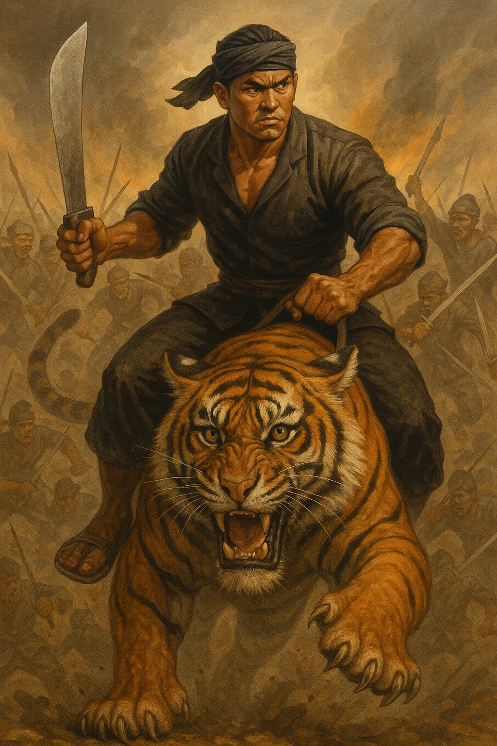 “Aing gé nyaho, sia mah lain maung nu ngagaur saméméh nyerang. Sia mah kebo nu sesegor jeung téténjrag heula, tuluy eureun sajongjongan laju nyebrut narajang ngagunakeun tanaga nu teu kapalang.”