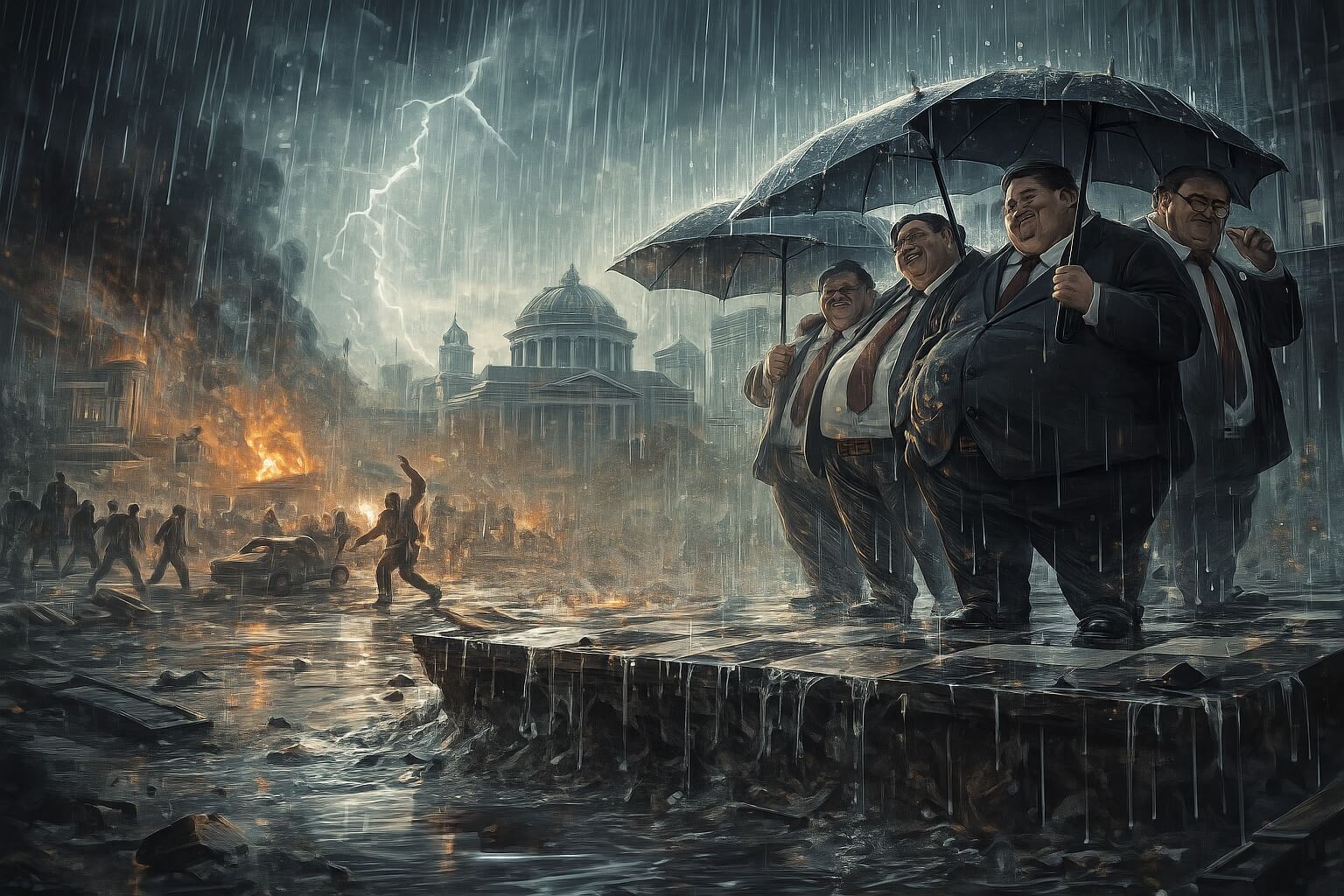 Hujan membawa berkat ke tanah gembur maupun keras. Tetapi sebagian elit, ketika turun, justru membawa kutuk: menyandera masa depan, memberi tumpangan kepada kerabat-kroni yang tak layak naik. Air mengalir ke tempat rendah karena hukum alam; kekuasaan merosot ke tempat rendah karena kelicikan sistemik yang menggerus nurani.