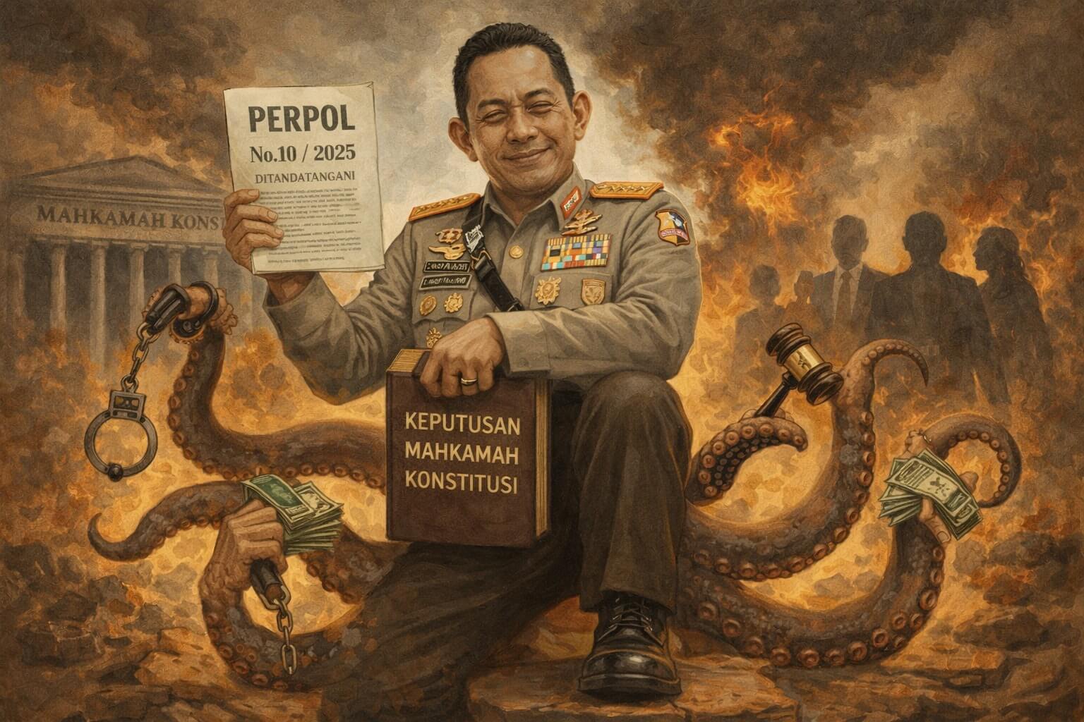 Kapolri menandatangani Perpol 10/2025, sebuah peraturan yang oleh Harian Kompas disebut secara lugas dan tanpa basa-basi sebagai “pembangkangan konstitusional.” Ini bukan istilah sembarangan. Ini tudingan serius: bahwa sebuah peraturan internal lembaga negara bertentangan langsung dengan putusan Mahkamah Konstitusi.