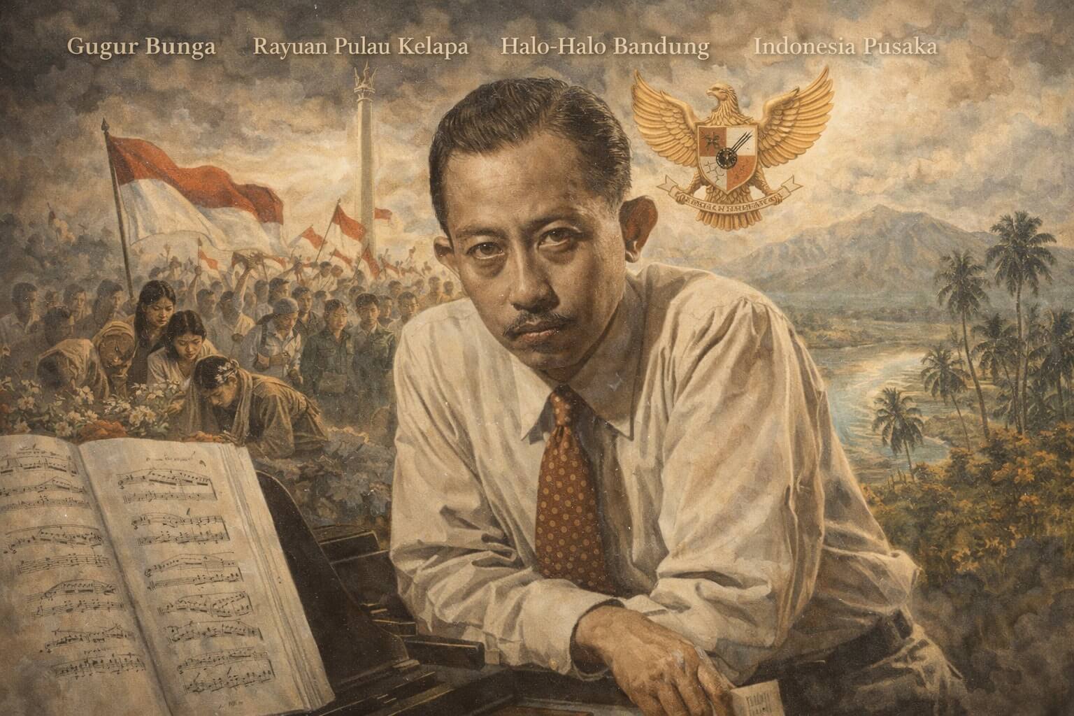 Ismail Marzuki adalah komponis nasional satu-satunya yang berhasil mencatatkan dalam lagu setiap titik sejarah Revolusi Indonesia sebelum dan sesudah Kemerdekaan. Sekedar menyebutkan beberapa karyanya adalah: “Gugur Bunga”, “Rayuan Pulau Kelapa”, “Halo-Halo Bandung”, dan “Indonesia Tanah Pusaka”. Lagu-lagu ini tidak hanya mampu menguatkan kecintaan pada Indonesia sebagai bentuk nasionalisme namun juga membuat kita menitikkan airmata untuk negeri yang kini berantakan.
