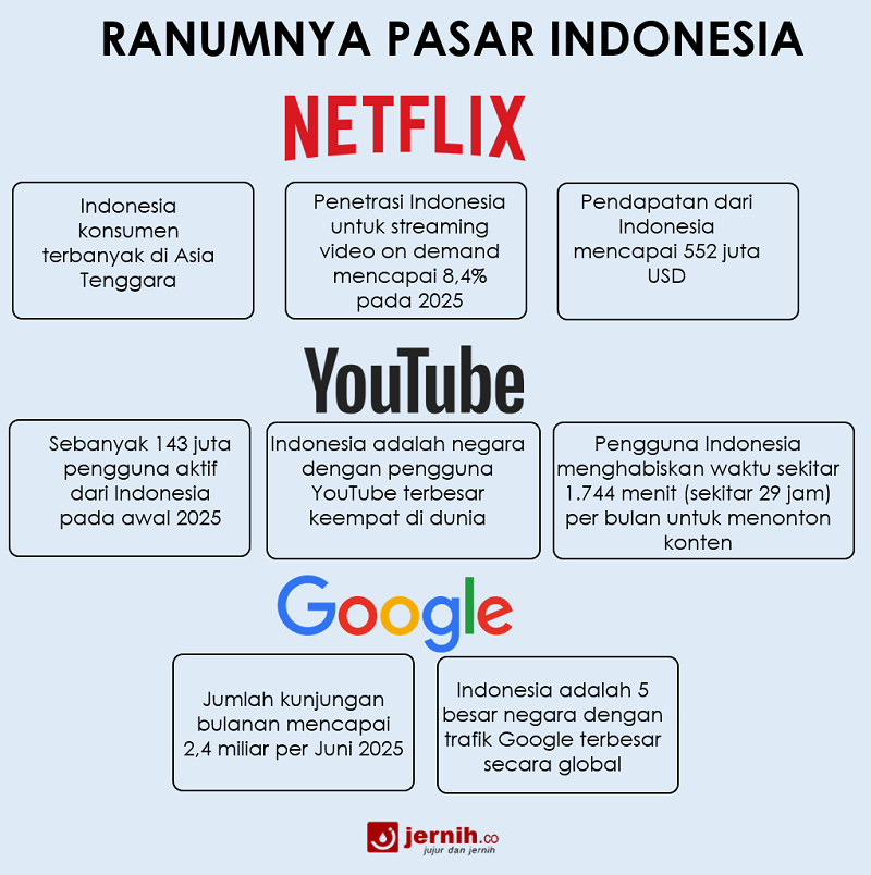 Dominasi platform digital global di Indonesia terlihat di hampir seluruh sektor — mulai dari layanan Over The Top (OTT), cloud computing, iklan digital, hingga kecerdasan buatan (AI).