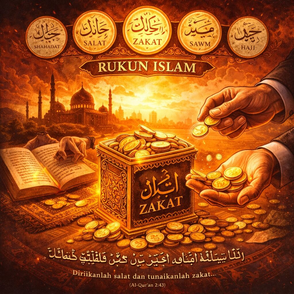 Zakat bukan sekadar amal yang dianjurkan—ia adalah salah satu dari lima rukun di mana bangunan Islam ditegakkan. Nabi Muhammad (shallallahu ‘alaihi wa sallam) bersabda: “Islam dibangun di atas lima perkara: bersaksi bahwa tiada Tuhan selain Allah dan Muhammad adalah utusan Allah, mendirikan shalat, menunaikan zakat, puasa Ramadhan, dan haji ke Baitullah bagi yang mampu.” (Shahih al-Bukhari, Shahih Muslim).