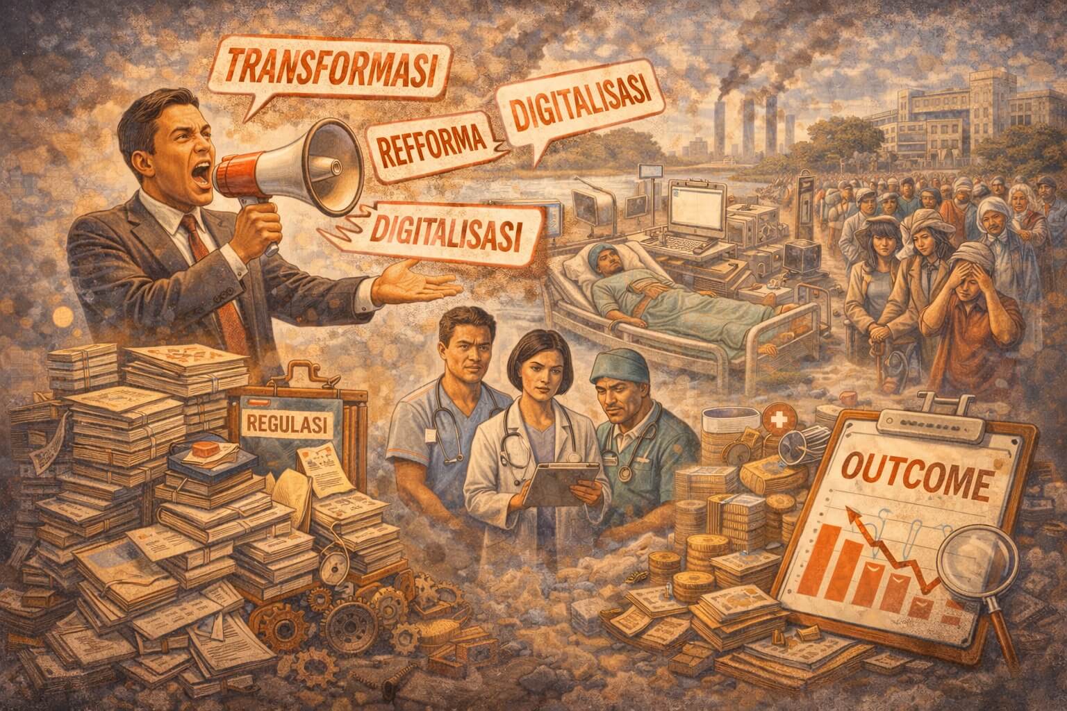 Tanpa perubahan proses, struktur baru malah bisa menambah beban: dokumentasi bertambah, alur makin panjang, tenaga klinis tersedot ke administrasi, dan pasien tetap menunggu. Kemenkes menyebutnya transformasi kesehatan, padahal yang terjadi adalah kompleksitas yang meningkat.