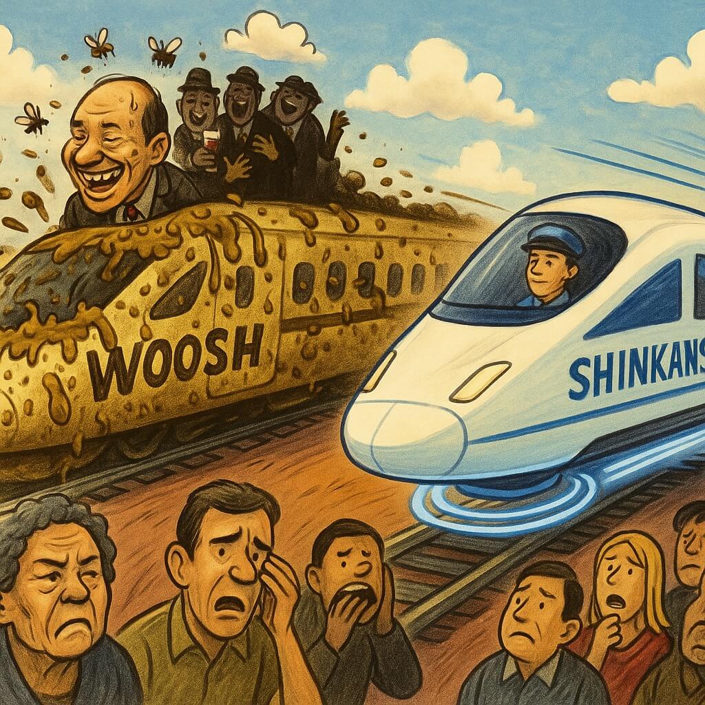 Baiklah. Masalahnya, Chuo Shinkansen Tokyo-Nagoya juga tidak dapat dibandingkan dengan KCJB. Bahkan lebih parah. Bukan hanya medan konstruksi yang berbeda, teknologi kedua kereta cepat tersebut juga berbeda jauh, bagaikan ‘bumi dan langit’: bagaikan membandingkan ‘macan dengan kucing’.