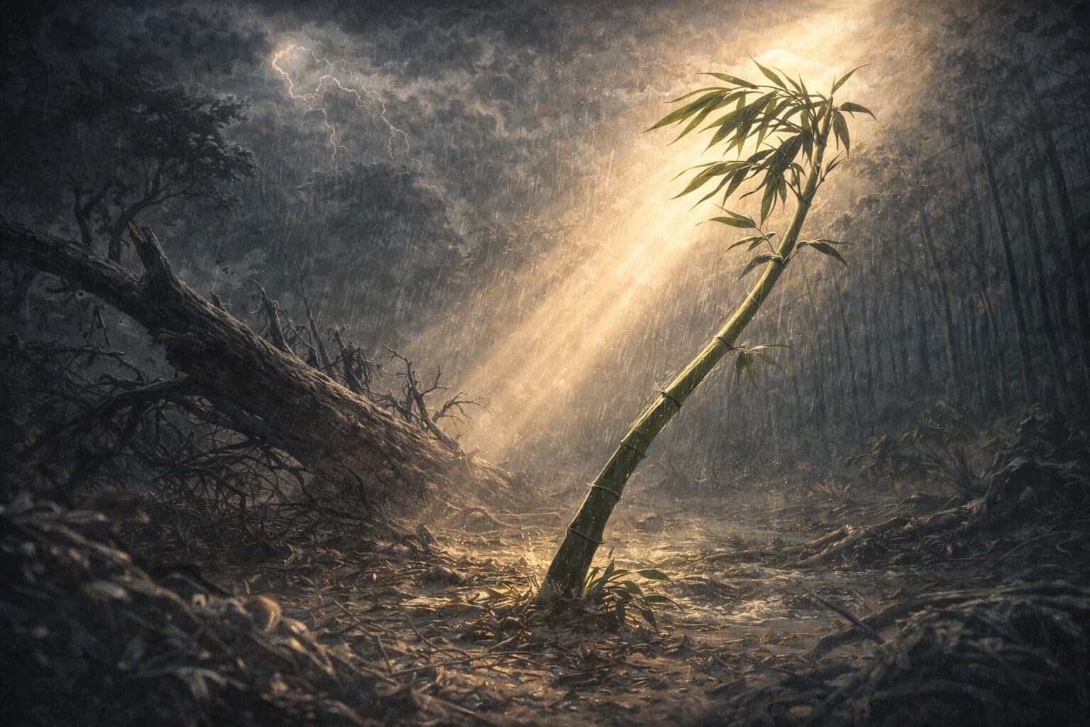 Kita bisa belajar dari kearifan bambu. Ia tidak menghadapi angin kencang dengan kekakuan. Ia melentur hingga menyentuh tanah, tetapi jarang patah. Ketika badai berlalu, ia bangkit kembali—tegak dan hidup—berbeda dengan pohon besar yang kaku dan merasa paling kokoh, namun justru tumbang.