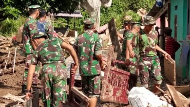 Yonif 9 Marinir Bantu Warga Lampung Bersihkan Akses Jalan Akibat Longsor